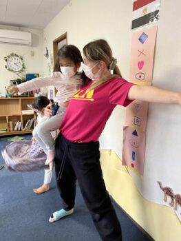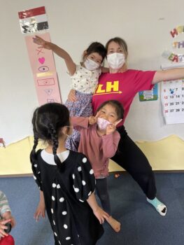 On the first floor Zuzanna sensei sang some songs with Sakura and Kiku.