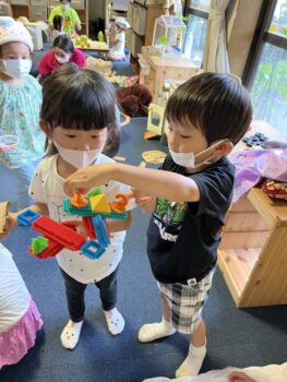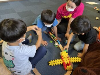 Snack timeの後は、暑さや週末なのもあってか疲れている様子も見られたので、室内のFree play timeでそれぞれ好きな遊びをして、ゆったりと過ごしました。