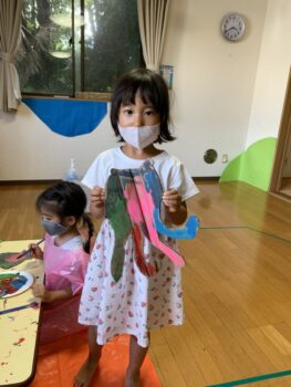 After snack time Kiku gumi helped Nora sensei prepare for the Matsuri fishing game!