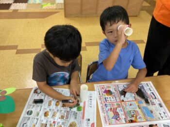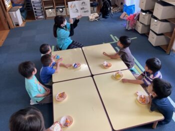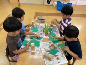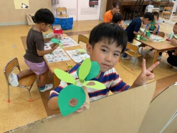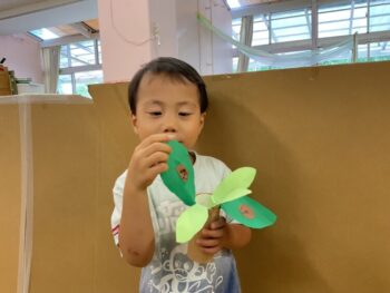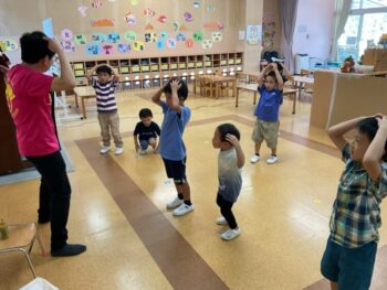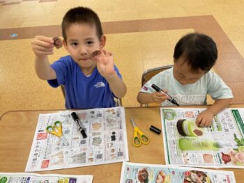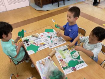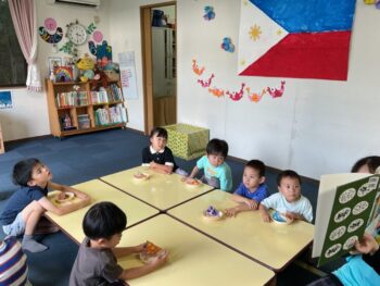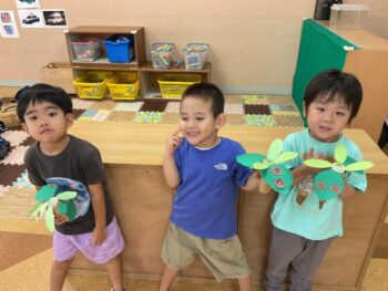 Hello readers! It’s still hot out, isn’t it? We started out by warming up with a classic song: Head, Shoulders, Knees and Toes. After that we went through all the different weathers as we danced “Whatever the Weather”. In the Philippines where it’s hot most of the year, Filipinos cool down with a nice, cool serving of coconut juice. We learned about the Filipinos’ love for the fruit. After that, we crafted our very own coconut trees from toilet paper rolls and craft paper!