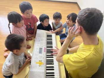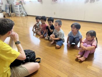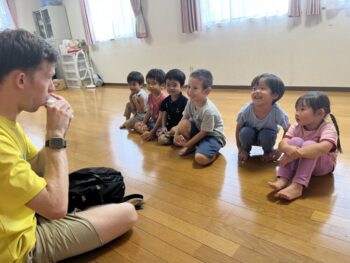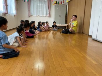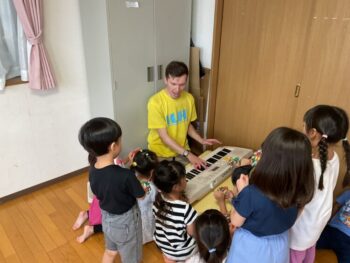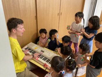 Today I had two music classes for 25 minutes each with the older kids and then the younger kids. For both classes I started by dancing to the ILH “Hello Song”. And then we danced the same song but faster and then slower. Then we learned about different types of weather and danced to the ILH pirate song “Across the Sunny Sea”. Then I showed the kids some of musical instruments including the ocarina and the bird whistle, and then showed them a little magic trick with my toy that makes a squeaky sound. Then to finish the class I passed out some bells, and we sang and played to the ILH songs “Whatever the Weather” and finished with “The Goodbye Song”