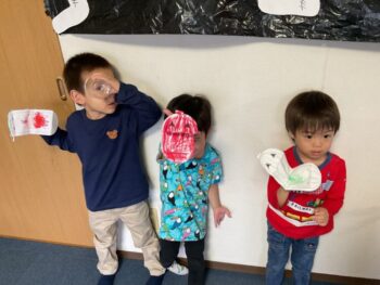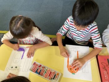 Hello! In today’s lesson we spoke about Halloween and Body Parts. We started our lesson with the “Skeleton Dance”, which helped us learn about different body parts and bones in our bodies. Then we practiced talking about Halloween and spoke about “Frankenstein”, “Pumpkins”, “Black Cats” and “Skeletons”. We also named our skeleton decoration and decided on the name “Mr Bones”. For our craft today, we make Halloween Puppets and then played a game with them called “Hungry Hungry Pumpkins”. Awesome work!