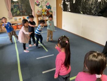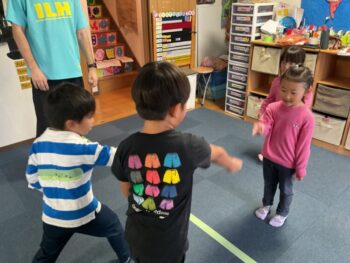 Today we had a fun activity time with “the opposites” as theme. We started by dancing on the Open shut them song, then we moved on to the “Rock, scissors, paper championship” game. The children lined up at the starting line and played rock scissors paper against the teacher, who was standing at the goal line. Those who won could go 1 step forward, but they had to go 1 step back if they lost. The first one to reach the goal became the new champion and would play against everyone in the next round.Almost everyone was able to become the champion.
