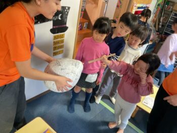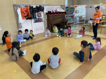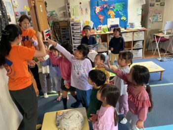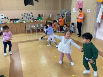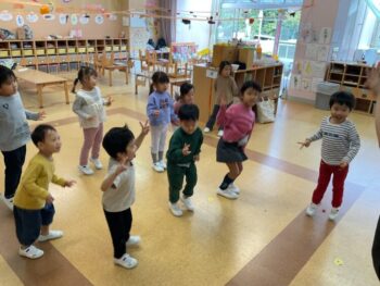 Today we reviewed some Halloween monsters like zombie, witch and pumpkin . Then we were ready to dance our “five little monsters” song! For today’s game, we placed the monster in different parts of the room. The kids danced until the music stopped, and then, they had to choose one of the monster and go to that monster’s area. After that, we all asked, “what monster?” One of our friends or teachers, chose a monster without looking, and the kids in that monster’s group had to sit down and say the next monster with their eyes closed until we had one final winner!