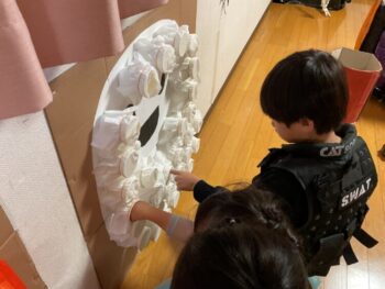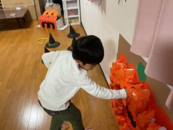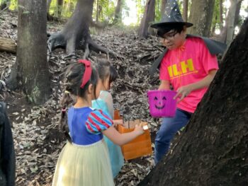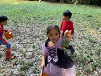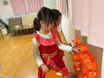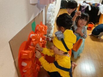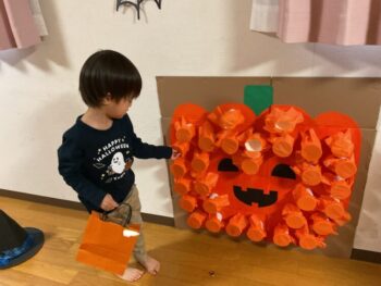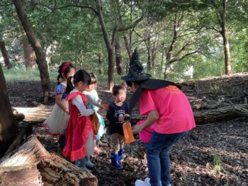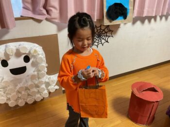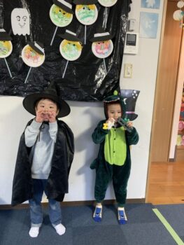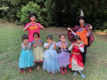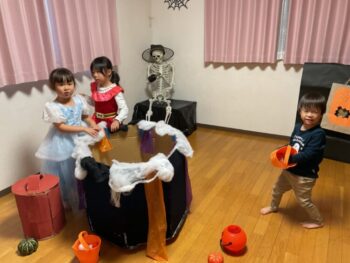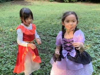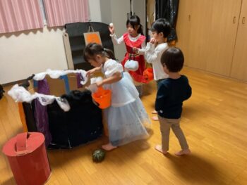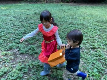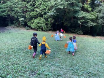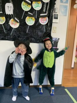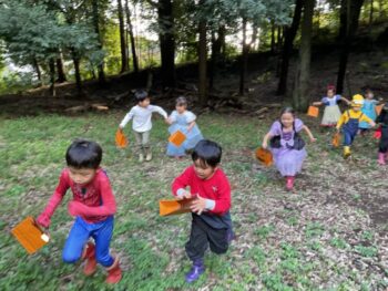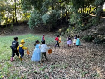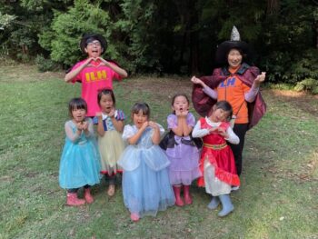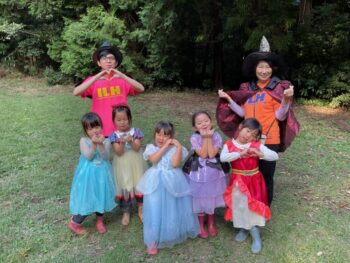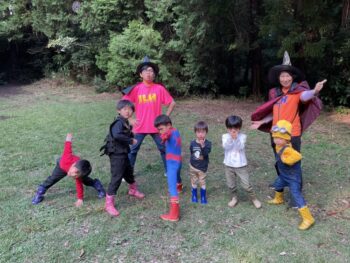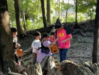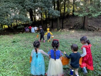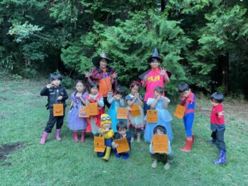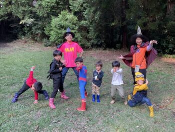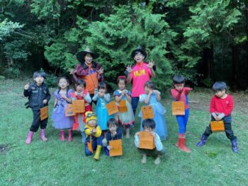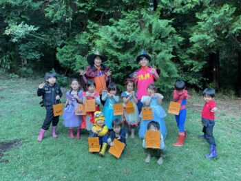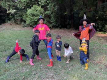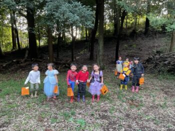 Trick or treat! Today we had day 1 of the Kodomo no Mori’s Spooky Halloween Party! Everyone wore nice costumes and we all felt the Halloween spirit! Today was packed with a lot of Halloween themed activities. First, we went to a clearing and did a Trick or Treat parade. After that, we teachers took turns hiding and the kids had to find us! When they did, they said “Trick or Treat!” and received candies and treats. They were really good at finding us!