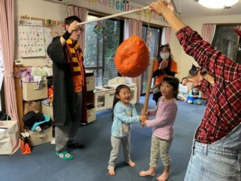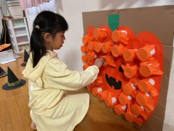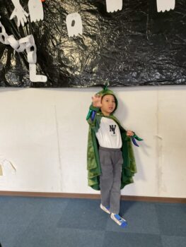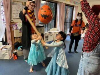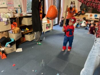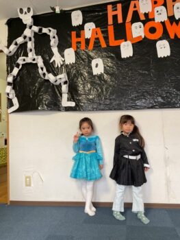 Today we had the celebration of our Halloween Party! We did many activities. The children changed into their costumes and we all went outside. Three different ghosts were waiting for them, and the kids got candies after saying “trick or treat”. After coming back, the real party started! They had to complete a haunted house and play four different games to get more candies and surprises. They had so much fun! Lastly, we broke the last piñata we made and found different toys inside.