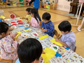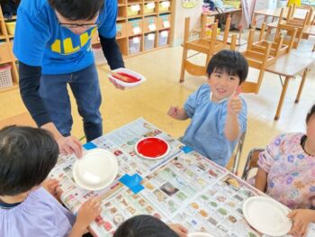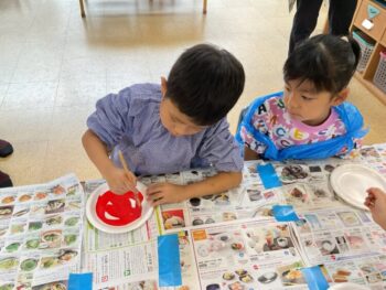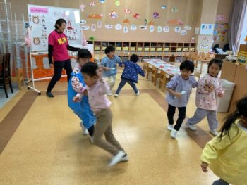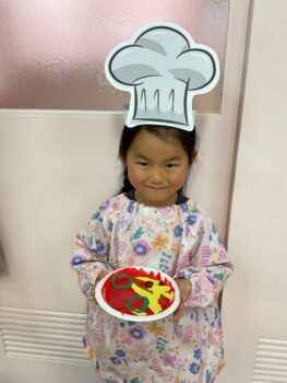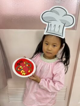 Hello readers! Joshua here! Today we cooked up something amazing! It’s round, it’s delicious and it has a lot of toppings… it’s pizza! After doing our “Finest chef in the world” dance, we cut and glued our toppings on our paper plate pizzas. The kids enjoyed placing their toppings! After that, they put on their chef hats and became true “pizza chefs”. Amazing! To end circle time, we played a “minecraft creeper pass” game. The kids stood in a circle and passed the “creeper” around. But they had to answer and ask an English question before they could pass it! They had to pass it quickly because creepers explode! We had a great time! See you again!