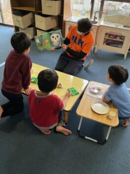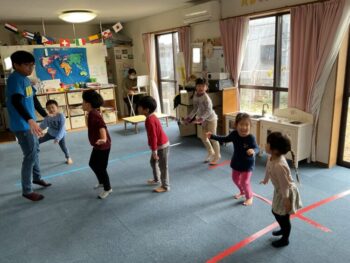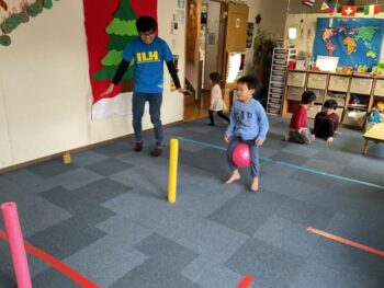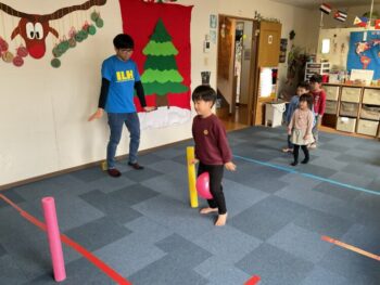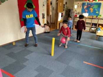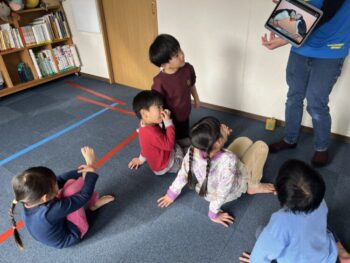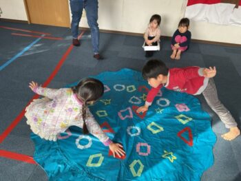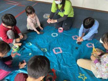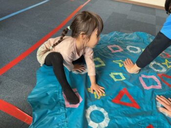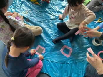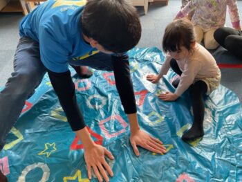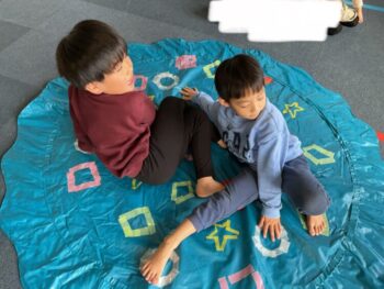 After that we played “puffin egg relay” and “ puffin football.” We also made our own twister game mat using tape. We made not just circles but other shapes too! It was a lot of fun! See you next time!