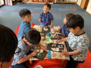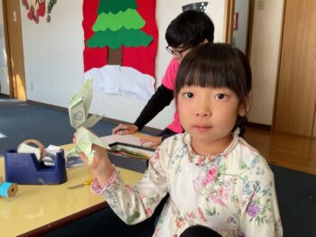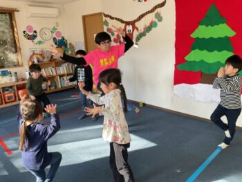 Ho ho ho! It’s almost Christmas, everyone! It’s also the last day of Kodomo no Mori’s Winter Camp. Today we started off by dancing to the ILH Original: “The Hello Song”. Then I challenged the kids with an “Animal tail quiz”! They had to guess which animal a tail belongs to. They got six out of seven questions right! They missed “fox” because their tails are so bushy. Still, great job!