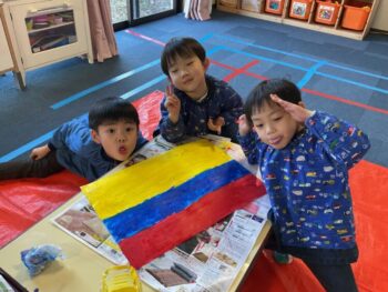 Continuing our trip around the world, we learned about January’s country, Colombia! They’re known for their coffee, beautiful emeralds and love for dance. The kids teamed up and painted two Colombian flags. We also danced to the ILH Original, Jungle Samba! Great job, guys! See you next time!