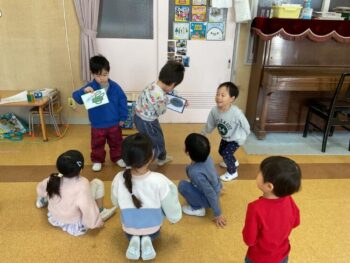Hello! We had a lot of fun again during circle time! It was a very nice and sunny day so we danced to “Across the Sunny Sea”. We pretended to be pirates and sailed through different kinds of weather. For our main activity, we learned about different parts of the house and the things that belong in them. We learned words like “bedroom”, “living room”, “pajamas”, “watering can” and so on. Today’s game was simple: they had to draw an item card from a box, say what they got out loud, and then place it in the correct zone. We also did a fun memory game where three people chose an item each and show it to the class for 5 seconds. The other students had to remember who held which item! We had a fun time playing outside as well! See you next time!