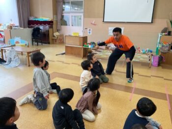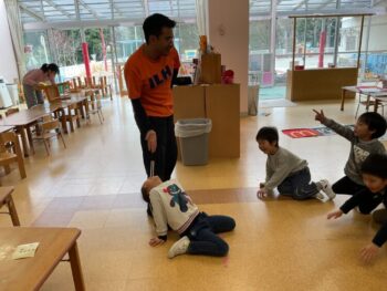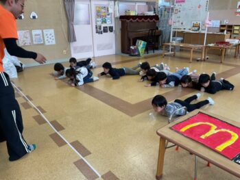After that cleaning session we lined up for a plastic cup race! Each kid had a plastic cup ready and on the count to three we started the race! We had to push the cup without touching it with our body, only by blowing some air, they all catch up pretty well and the races were super close it was hard to tell who was the winner.
