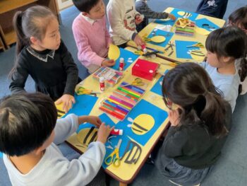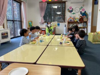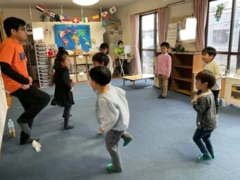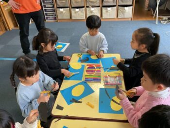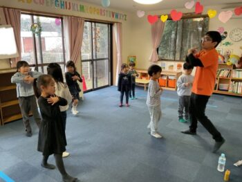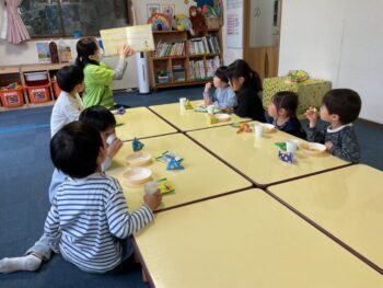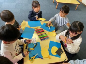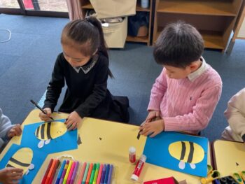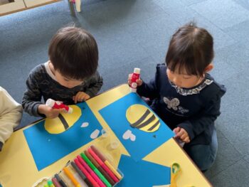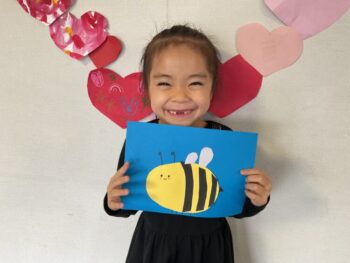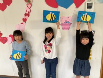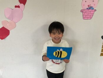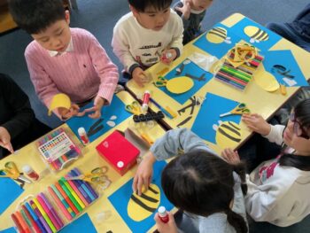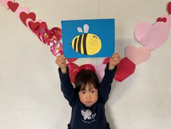 Hello readers! It’s March! It doesn’t feel quite like it yet, but it’s officially spring. Today we danced to the ILH song “Helping Hand”. Then we reviewed the names of different bugs. We also learned new ones like the rhinoceros beetle and the pill bug, better known by kids as “roly-poly”. Our craft today featured a bug known for helping each other, the humble bee. We cut out shapes from craft paper and assembled them with glue. Of course, the kids drew on the faces and other body parts, giving them personality! They’ll be up on Kodomo no Mori’s wall as one of our spring decorations. Good job all!