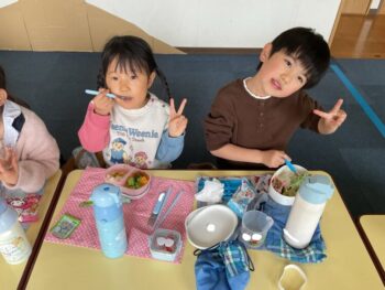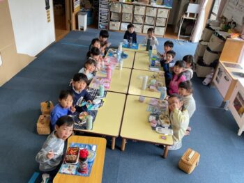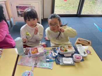 Good afternoon! Today the children spent all day at Kodomo No Mori. We started our day by having lunch with the children. They were very excited to show off there unique and delicious lunches to everyone.