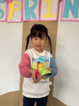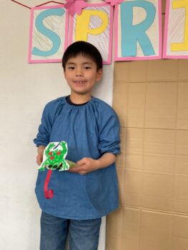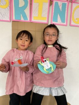 After lunch, we had our English lesson, where we started by talking about “Spring”. Our song today was called “Walking in the Jungle”. This was a great way to introduce our main topic, “Frogs”. We spoke about a few different types like the “Wood Frog” and the “Red Eyed Tree Frog” and how frogs have unique webbed feet. For our activity today, we made our own “Bouncy Frogs”. Excellent work!