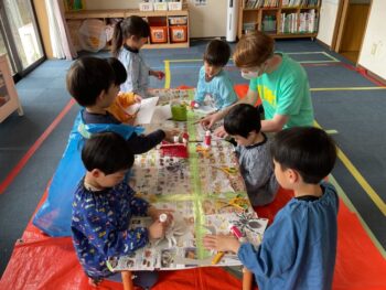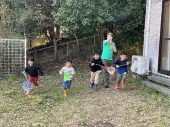 After lunch time, we had our second circle time for today. We danced to the superhero song and learned more about bugs, specifically their different shapes and sizes. For our second activity, we became bug hunters. The children were each given a net and then they had to catch pictures of different bugs hiding outside of the school. Great work bug hunters!
