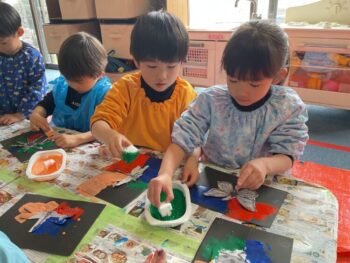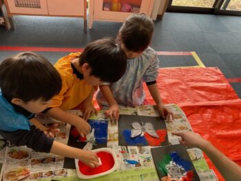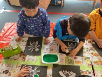 But to start our first day, we are introducing all things bug related by looking at some common bugs. We started by looking at some bugs the children already knew such as “Butterflies” and “Spiders” and then some new bugs such as “Dragonflies” and “Bumblebees”. For our first activity today, we made “Bug Silhouette Paintings”. The children enjoyed using lots of different colors and making different bug shapes.
