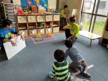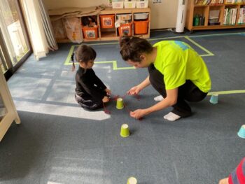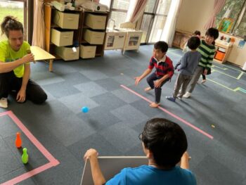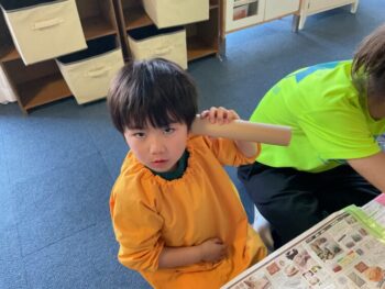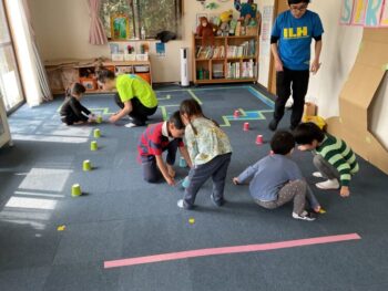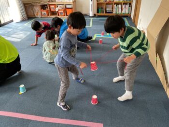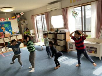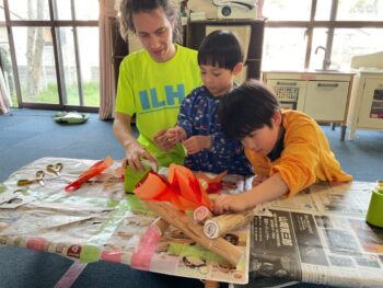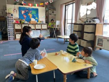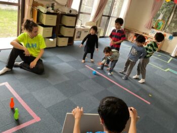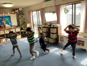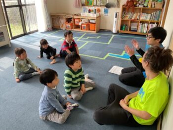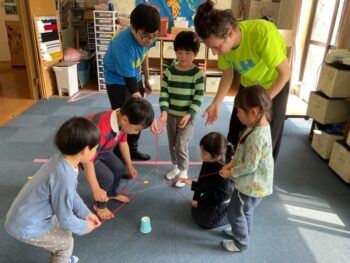 Hello this is Mattia Sensei and today I thought with Joshua Sensei! Our weekly theme is Happy Campers! We started off by dancing to “Move!” and “Open Shut Them”. We played two fun games today focused on teamwork. The first has been Cup Catcher which consisted on picking up the cups with ropes and rubber bands without making them fall. The second game, Mölkky (a type of bowling from Finland) involved hitting the ball pins. The goal of the game was to arrive at 50 points. The day proceeded with a nice walk among the cherry blossom inside the school campus. After lunch, we watched some cartoons both in English and in Japanese (Disney’s House of Mouse, Shinkarion and Dog Patrol). The afternoon activity has been about creating a campfire. We crafted logs and fire flames. Everyone had loads of fun and we learnt so many new English words regarding the adventurous camping world!