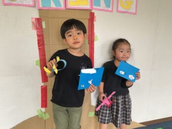 Hello everyone! We are preparing to travel the world together! Today we started our lesson with stretching in the tune of “Move Your Body”! The day continued with our travel preparation where we finally got our Passport! After dancing to “The Hello Song”, we learnt new English words such us “airport”, “airplane”, “luggage” and so on! During our crafting time, we made a nice airplane with paper, glue, and scissors! Everyone was so creative and ready to travel!