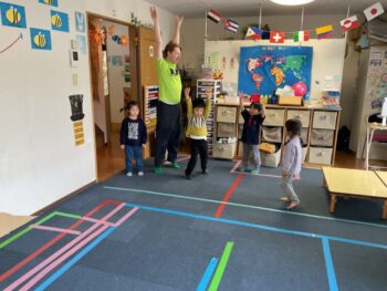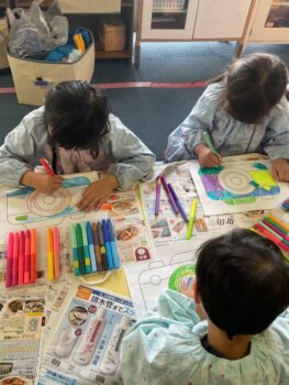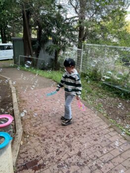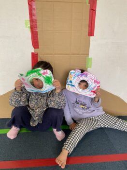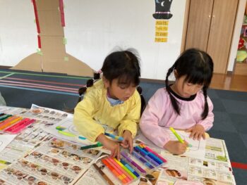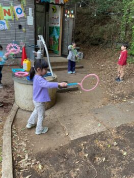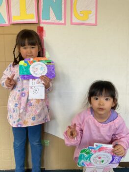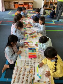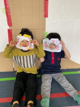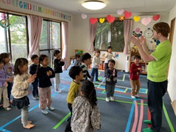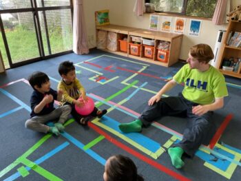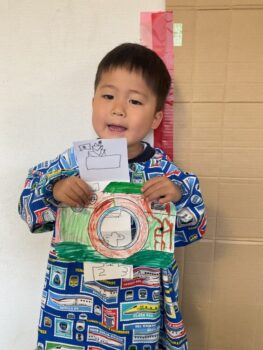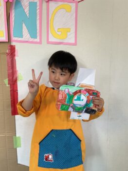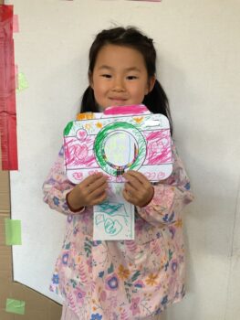 Good afternoon everyone. Happy Friday! Today, Sakura class had lunch at Kodomono no Mori and everyone did a great job eating. After lunch, we had circle time with the kids and learned the phrase “What’s your name?”. For our first activity, we passed the ball around the room and asked “What’s your name?”. We then made some paper cameras and had a small photo shoot with them.